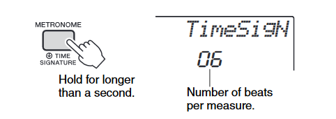 You can configure the metronome to use a bell sound for the first beat of each measure of the song you are playing.• You can specify 0, or a value from 2 to 6 as the number of beat per measure.• When playing a built-in song, the beats per measure setting (which determines when the bell sounds) is configured automatically for the currently selected song.