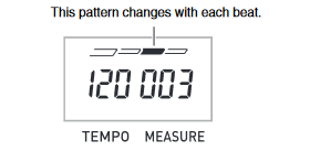 - If you do not perform any operation for after the beats per measure setting screen appears, the display will return to the screen displayed before you pressed 5.
